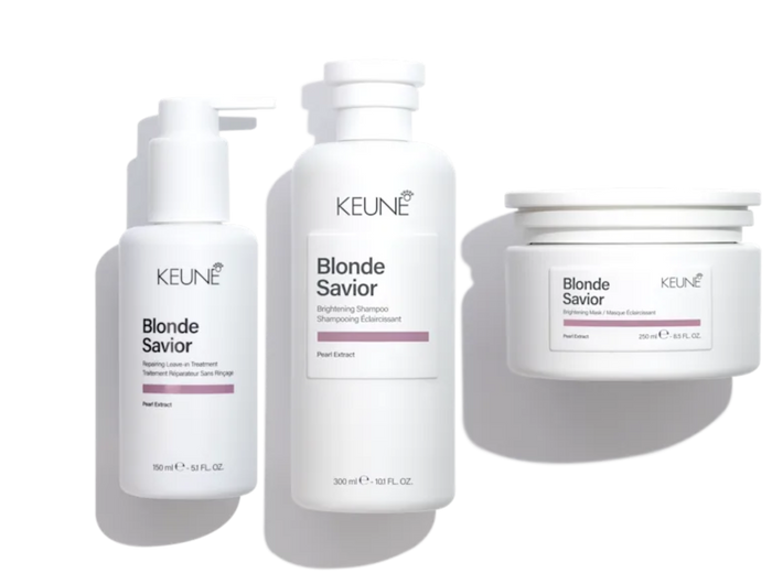 Laat je blonde tinten stralen met de Blonde Savior-routine, verrijkt met parelextract voor extra glans en glycolzuur voor intens herstel. Deze geavanceerde formule frist doffe of futloze blondtinten op, polijst en verzacht het haar, en versterkt de haarstructuur. Het resultaat: een frisse, heldere blonde kleur met een onweerstaanbare glans en zijdezachte finish.