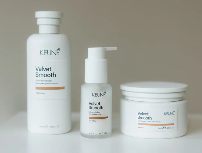 Zeg vaarwel tegen pluis en vochtigheid met de Velvet Smooth antipluisroutine, verrijkt met tulpextract en geavanceerde biomimetische lipiden. Deze routine voedt en beschermt het haar, terwijl het langdurig glad en handelbaar blijft. Zelfs weerbarstige lokken worden getransformeerd tot zachte, glanzende en perfect gepolijste haren – zonder te verzwaren.