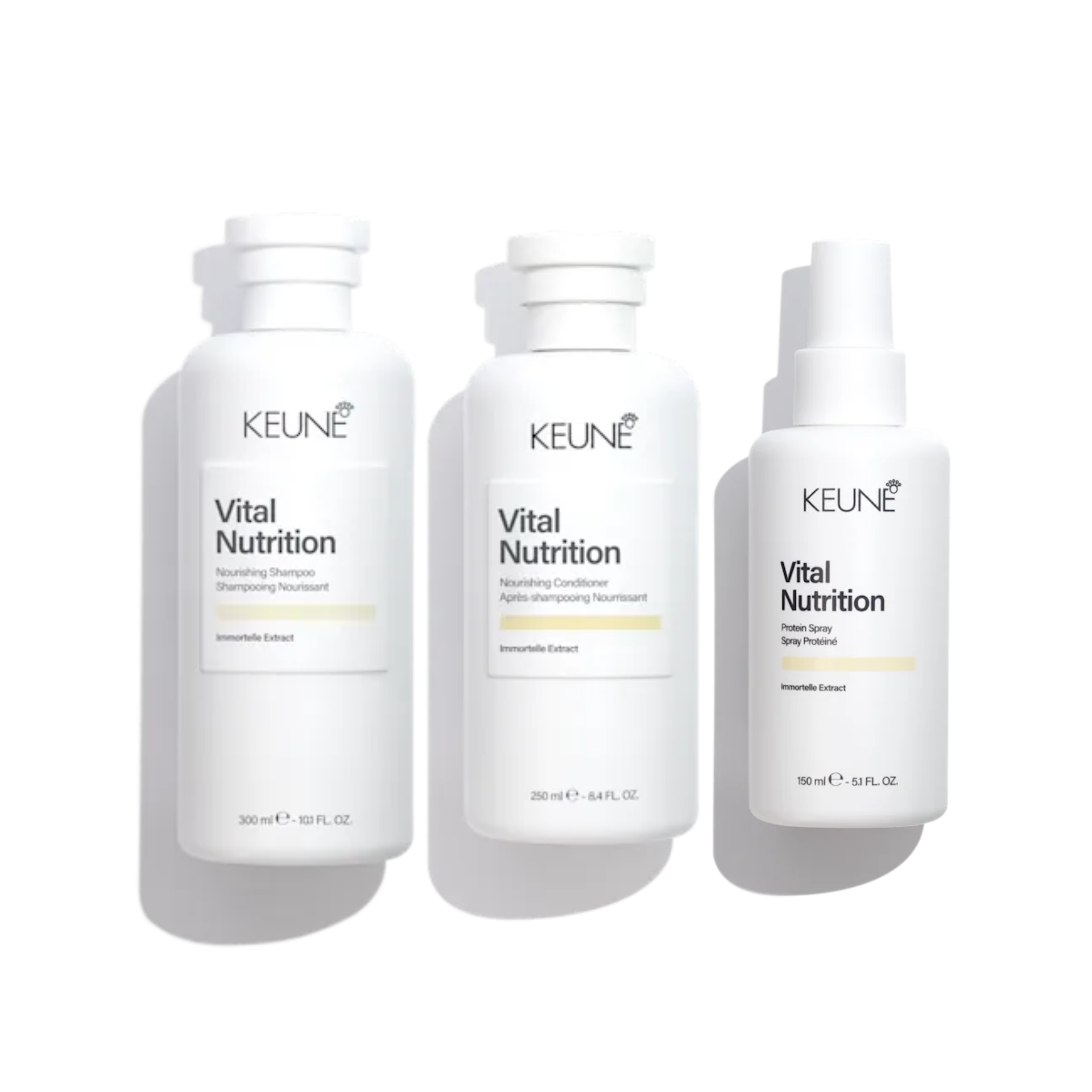 De Keune Care Vital Nutrition Strength & Protect Set combineert de hydraterende shampoo en conditioner met de herstellende Protein Spray. Deze complete routine reinigt, voedt en versterkt het haar, terwijl de leave-in spray extra bescherming biedt tegen hitte en invloeden van buitenaf. Ideaal voor droog, dof en beschadigd haar dat intensieve verzorging nodig heeft.